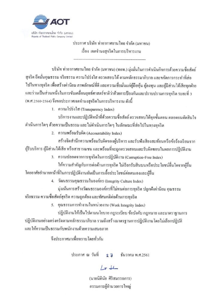 ทอท.ร่วมลงนามข้อตกลงคุณธรรม