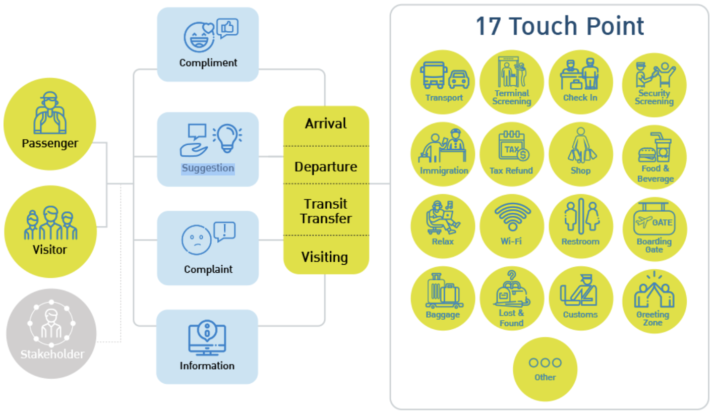 ทอท. จัดเก็บสถิติข้อร้องเรียน ข้อเสนอแนะ & คําชมเชยที่มีต่อ ทอท. (Feedback) เพื่อนํามาวิเคราะห์และพัฒนาการให้บริการ โดยคํานึงถึงทฤษฎี ผลงานวิจัย แนวทางการปฏิบัติที่ดี และการดําเนินการของท่าอากาศยานชั้นนําต่าง ๆ ของโลก ปัจจุบัน ทอท. มีการติดตามความคิดเห็นของลูกค้าตามเส้นทางการใช้งานของผู้โดยสารผ่านจุดการให้บริการ (Touch Point) จํานวน 17 จุด เพื่อนํามาประมวลผลและนําไปสู่การยกระดับการให้บริการเป็นประจําทุกเดือน