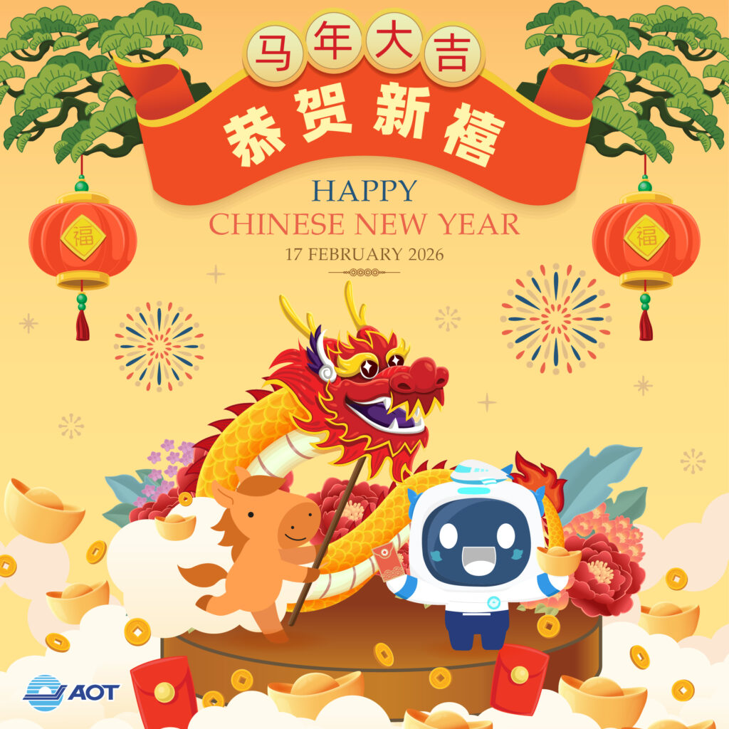 AOT คาดตรุษจีน 2569 มีผู้โดยสารกว่า 4.11 ล้านคน เตรียมความพร้อมท่าอากาศยานรอบด้าน ย้ำความปลอดภัยและการอำนวยความสะดวก สร้างความเชื่อมั่นควบคู่ประสบการณ์ที่ดีแก่ผู้โดยสาร