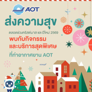 AOT ส่งความสุข ให้ผู้โดยสารช่วงคริสต์มาส และปีใหม่ 2569 ด้วยกิจกรรมและบริการสุดพิเศษ! ที่ท่าอากาศยาน AOT ทั้ง 6 แห่ง